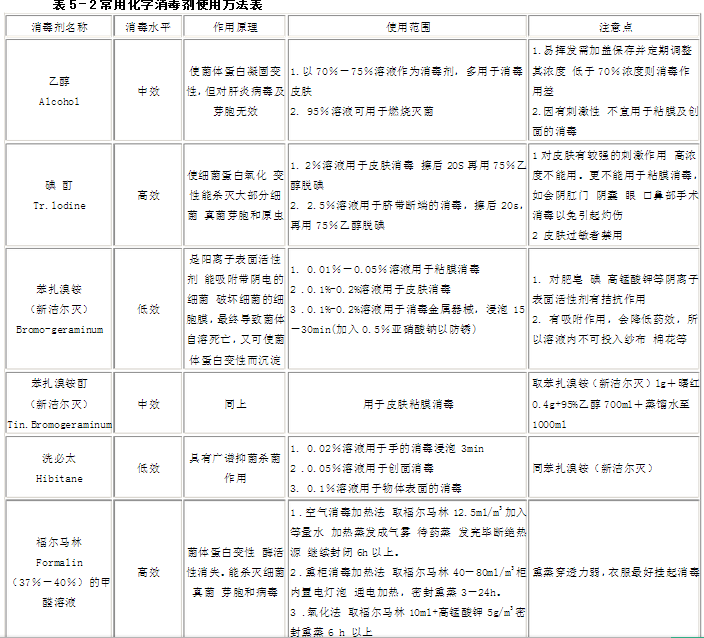 此外,尚可應(yīng)用甲醛或過氧乙酸等進(jìn)行熏蒸滅菌(詳見表5-2)。