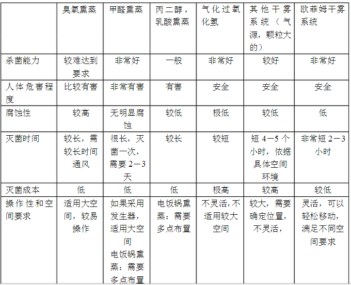 與其他幾種空間消毒方法比較,我們的方案可以對(duì)比如下